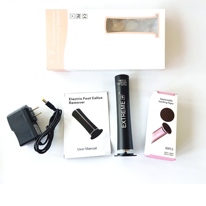 EXTREME+ Electric Foot Callus Remover with 60pcs Replacement Pads - Black